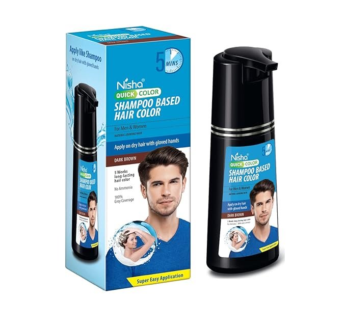 This Nisha hair color shampoo colored your hair quickly and easily within 5 minutes. Nisha hair dye shampoo is Ammonia free with 100% grey coverage. Also this hair colour shampoo cruelty-free & vegan. This hair color shampoo is long lasting up to 5 weeks. This made coloring as easy & fast as a shampoo. BOX CONTAINS: 180ml Bottle of Shampoo Hair Colour, Hand Gloves & 1 Instruction Leaflet. COLOUR- Black & Brown