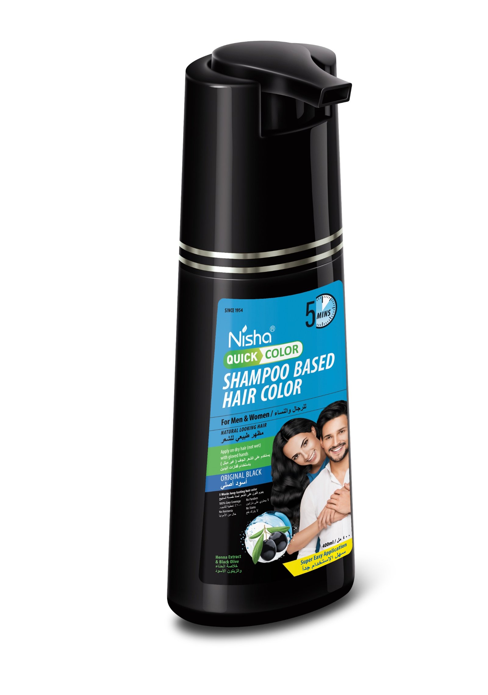 Experience the convenience of a shampoo and the effectiveness of a hair dye in one easy step with Nisha Quick Color Shampoo-Based Hair Color (Original Black). Specially designed for both men and women, this innovative formula offers quick, natural-looking coverage in just five minutes. The sleek black pump bottle ensures hassle-free application—simply press to dispense the shampoo color, apply with gloved hands, wait five minutes, and rinse for a rich black shade that looks naturally vibrant. Enriched with henna extract and black olive, Nisha Quick Color nourishes your hair while it colors, leaving it soft, shiny, and healthy-looking. Enjoy the confidence of beautifully colored hair with minimal effort and maximum results.